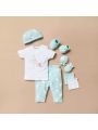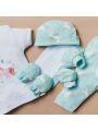 Une belle idée cadeau ce kit 8 pièces pour accompagner les premiers jours de bébé et l'envelopper de douceur. Il comprend : 1 T-Shirt, 1 pantalon, 1 chapeau, 1 gant, 1 chausson, 2 gants de toilette, 1 panier.