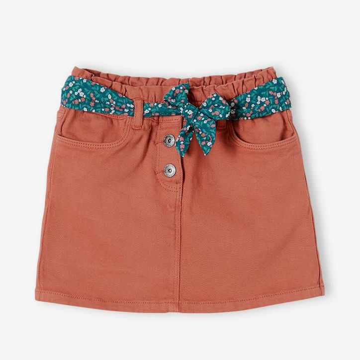 Jupe ceinture foulard fleurie - Marron - Vertbaudet