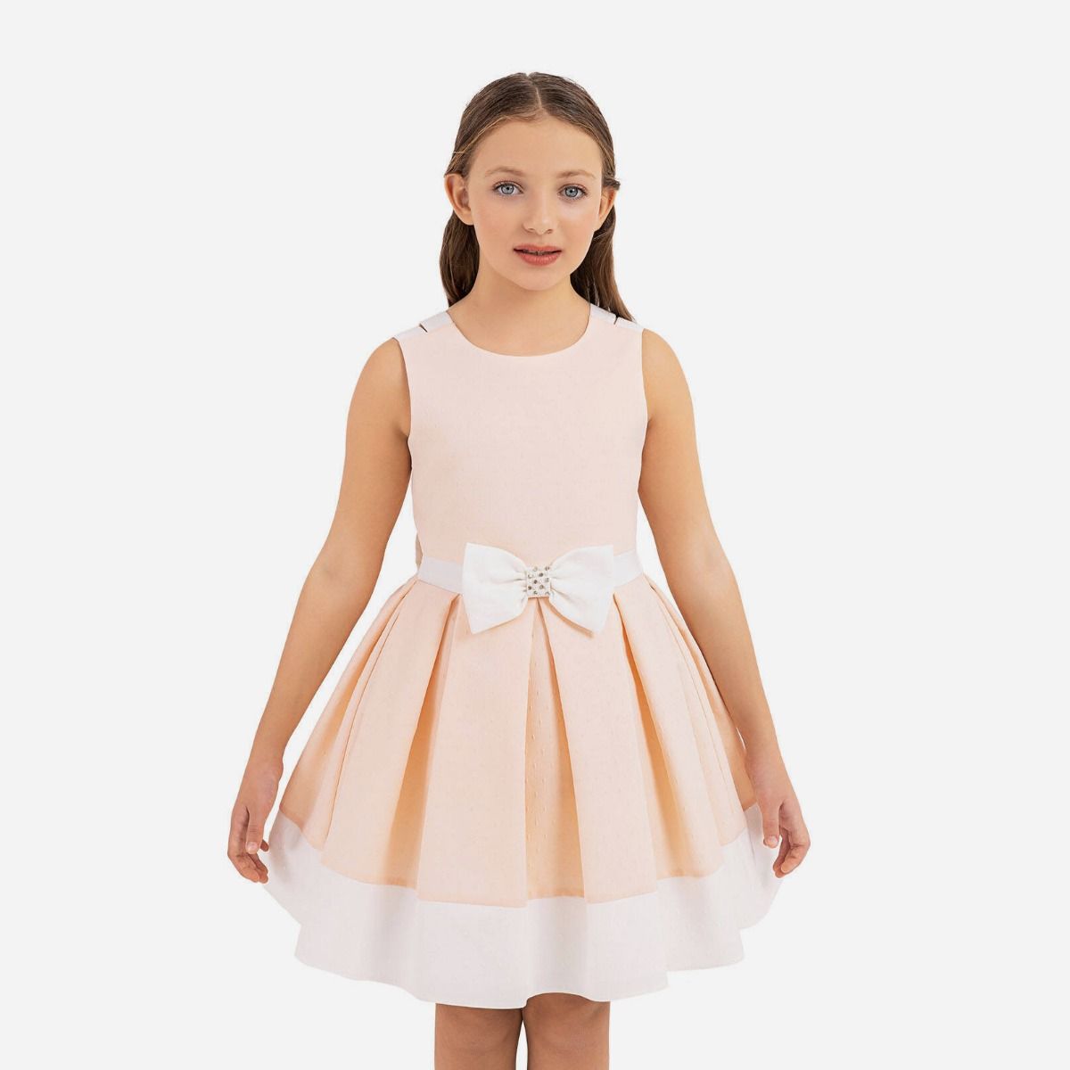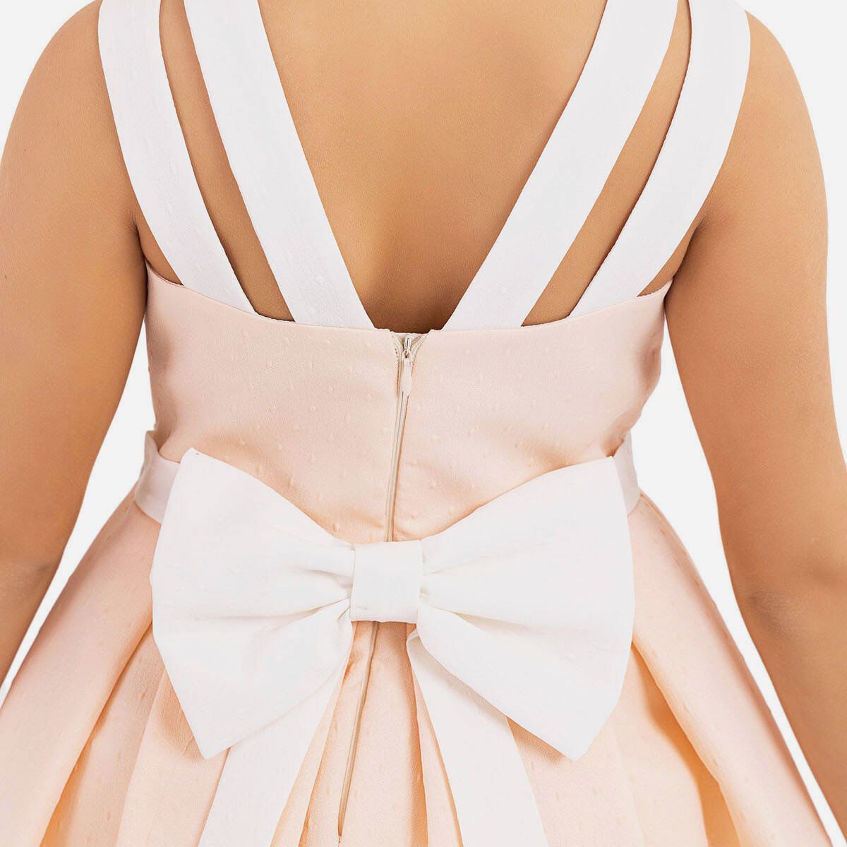 Robe de cérémonie à dos décollette - Saumon/Blanc - Pamina