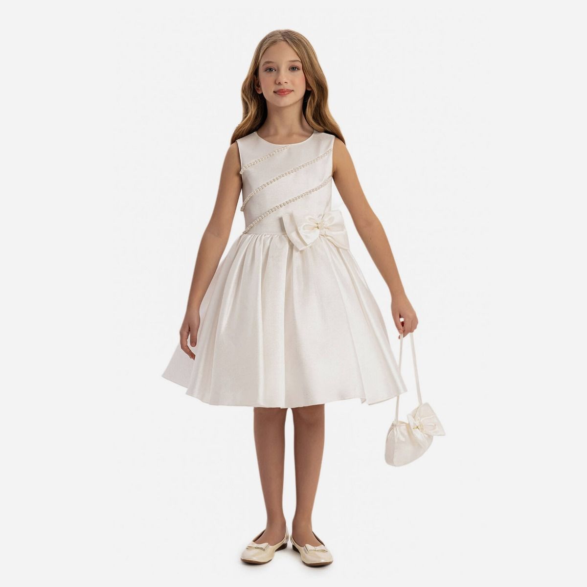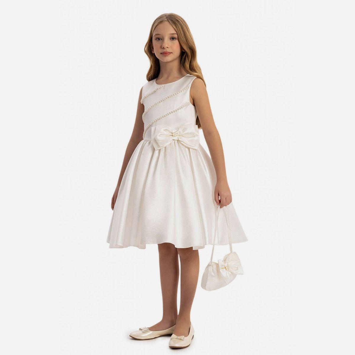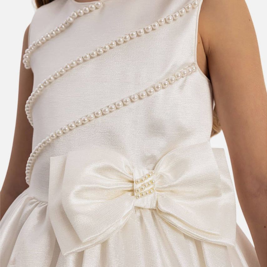 Robe de cérémonie perlée + sac à main - Blanc - Pamina