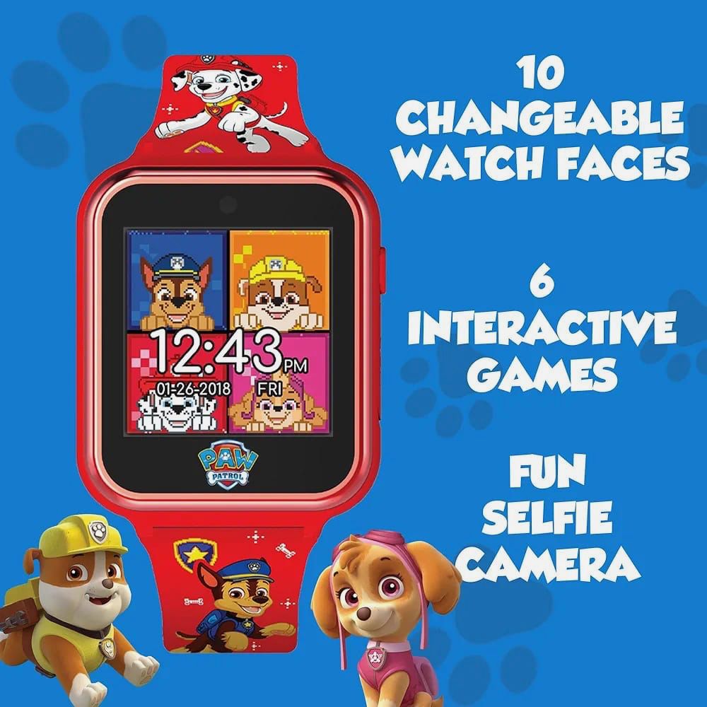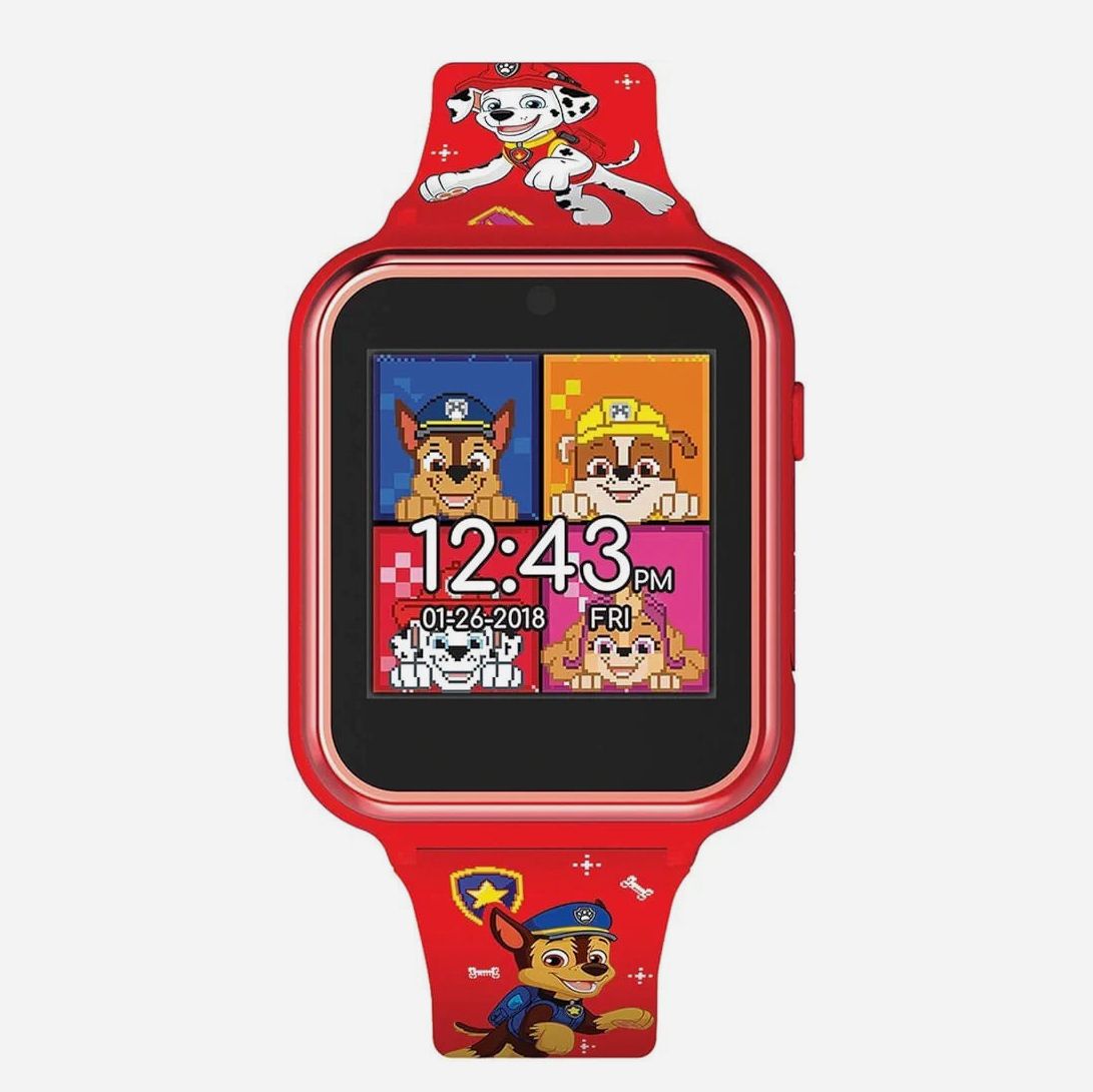 Montre connectée Pat' Patrouille rouge pour garçons et filles avec des fonctionnalités haut de gamme, 21,6 cm de long, boîtier 4 cm de large, 1,2 cm de haut, 40 g, bracelet en acrylique souple