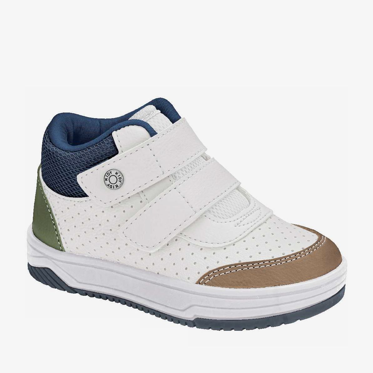 Baskets montantes perforées à pression - Blanc/Marron/bleu - Kidy