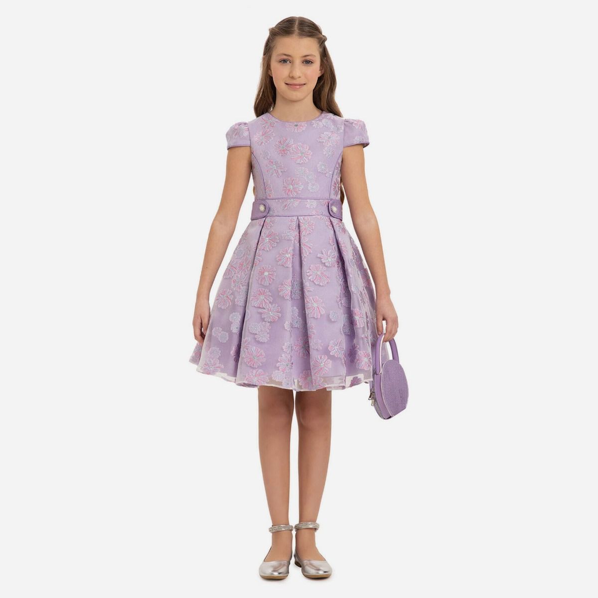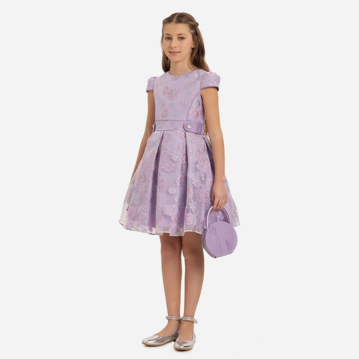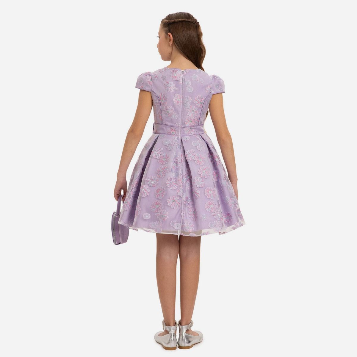 Robe de cérémonie à motifs fleurs + sac à main - Violet - Pamina