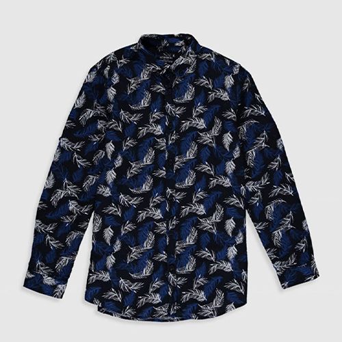 Chemise garçon longues manches à motifs - Bleu